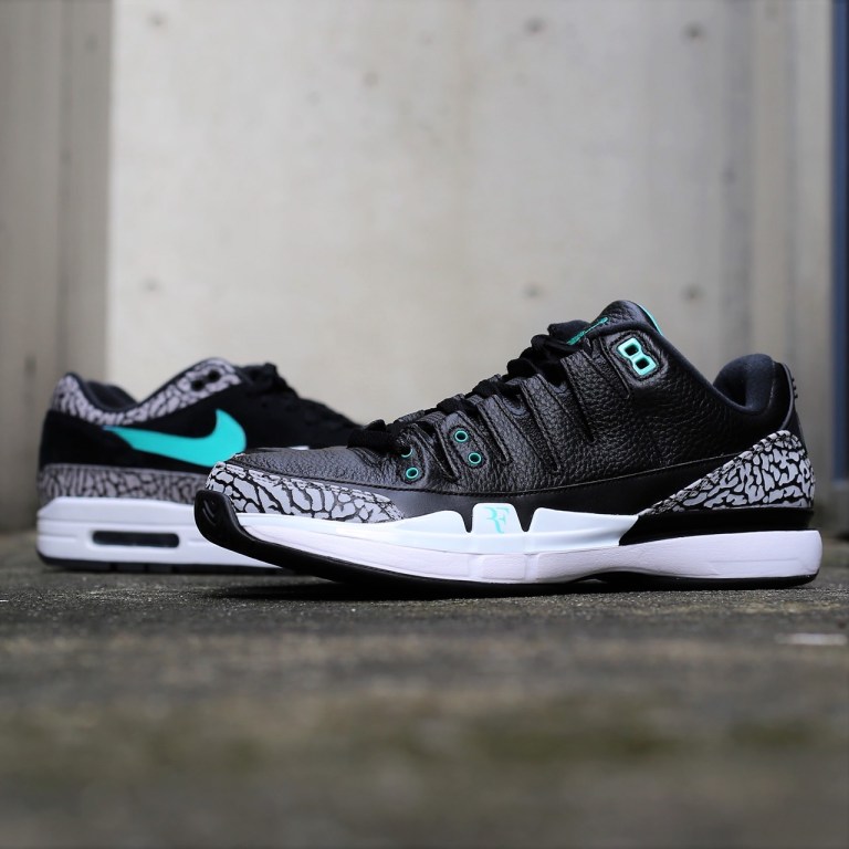 La passione di Federer per le sneakers è ormai cosa nota. Recentemente lui stesso ha dichiarato il suo amore per le limited editions e per le collaborazioni, discutendo e fornendoci interessanti scorci sulla sua collaborazione con il grande Tinker Hatfield, famosissimo designer di Nike e “padre” delle Air Max. Tre dei più famosi design di Hatfield confluiscono infatti in questo ultimo progetto di partnership tra il marchio RF e quello dio Jordan.