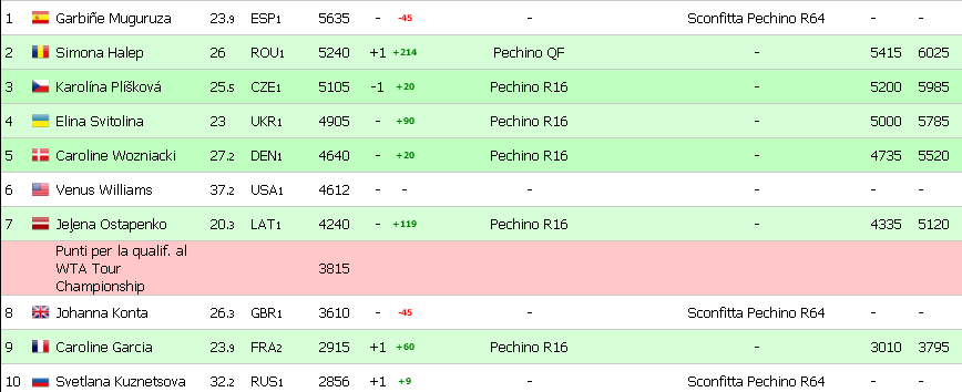 La tennista di Riga si aggiunge dunque alle altre sei prime della Race Wta, cioè: Garbine Muguruza, Simona Halep, Karolina Pliskova, Elena Svitolina, Caroline Wozniacki, Venus Williams. Secondo il regolamento delle Wta Finals, le prime sette partecipanti sono determinate dalla Race Wta; l’ottavo posto è solitamente riservato a una wild card che gli organizzatori del torneo possono assegnare a una tennista non presente fra le prime. Non resta dunque che aspettare e vedere su chi ricadrà la scelta, a meno che la Wta non decida di non assegnarne e garantire un posto all’ottava classificata della Race, che attualmente sarebbe la britannica Johanna Konta.