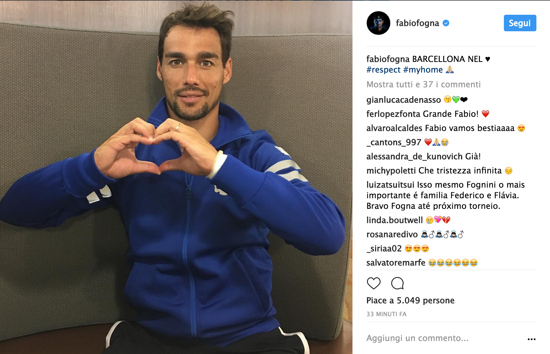 La solidarietà dei tennisti alle vittime dell’attentato di Barcellona