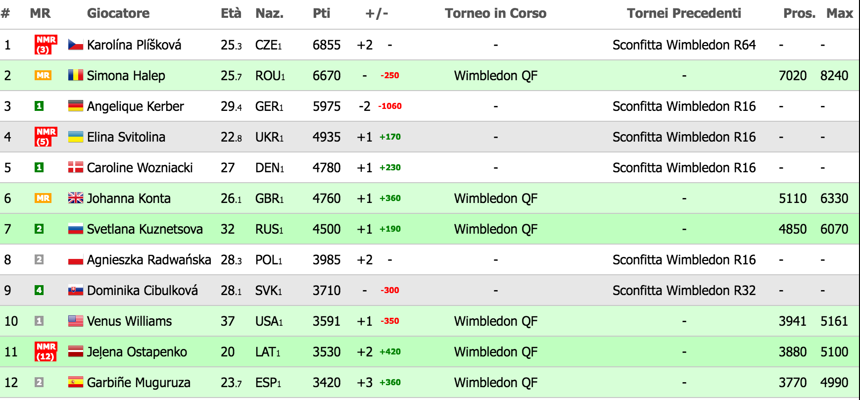 Ultimo match di giornata sul Campo Centrale, quello fra la tennista di casa Johanna Konta, la favorita per molti bookmakers, e la rumena Simona Halep, che in caso di vittoria, grazie all’eliminazione di ieri di Angelique Kerber, diventerebbe la 23esima numero uno del mondo Wta della storia. Se invece dovesse perdere, la tennista di Costanza rimarrebbe seconda, facendo un grande favore alla ceca Karolina Pliskova, che la scavalcherebbe sul podio: