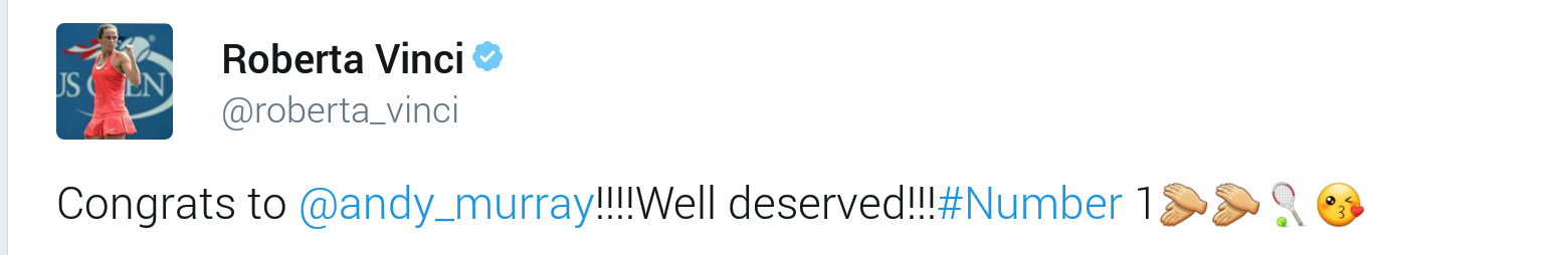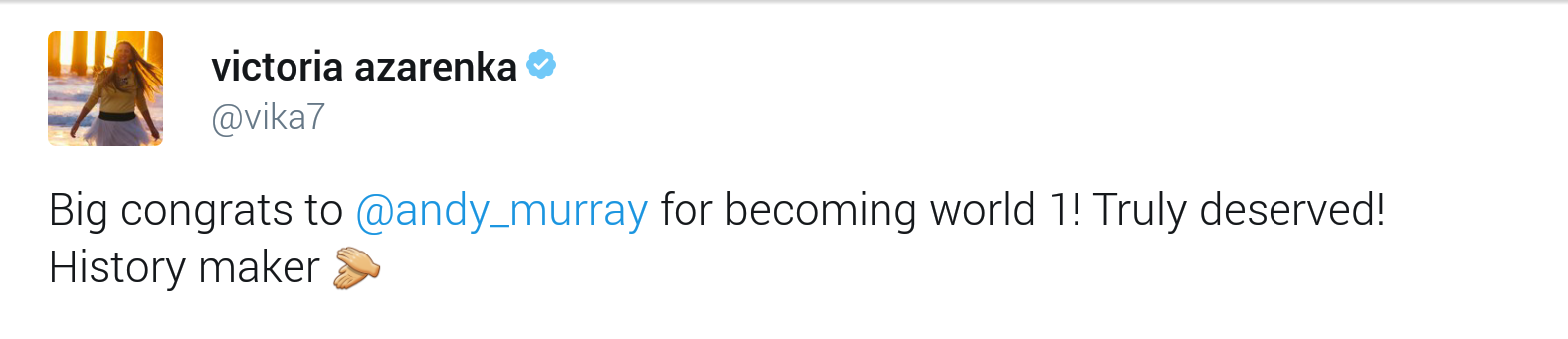 Congrats to @andy_murray for becoming the new world no 1! It's been a long time coming, so well deserved!!
