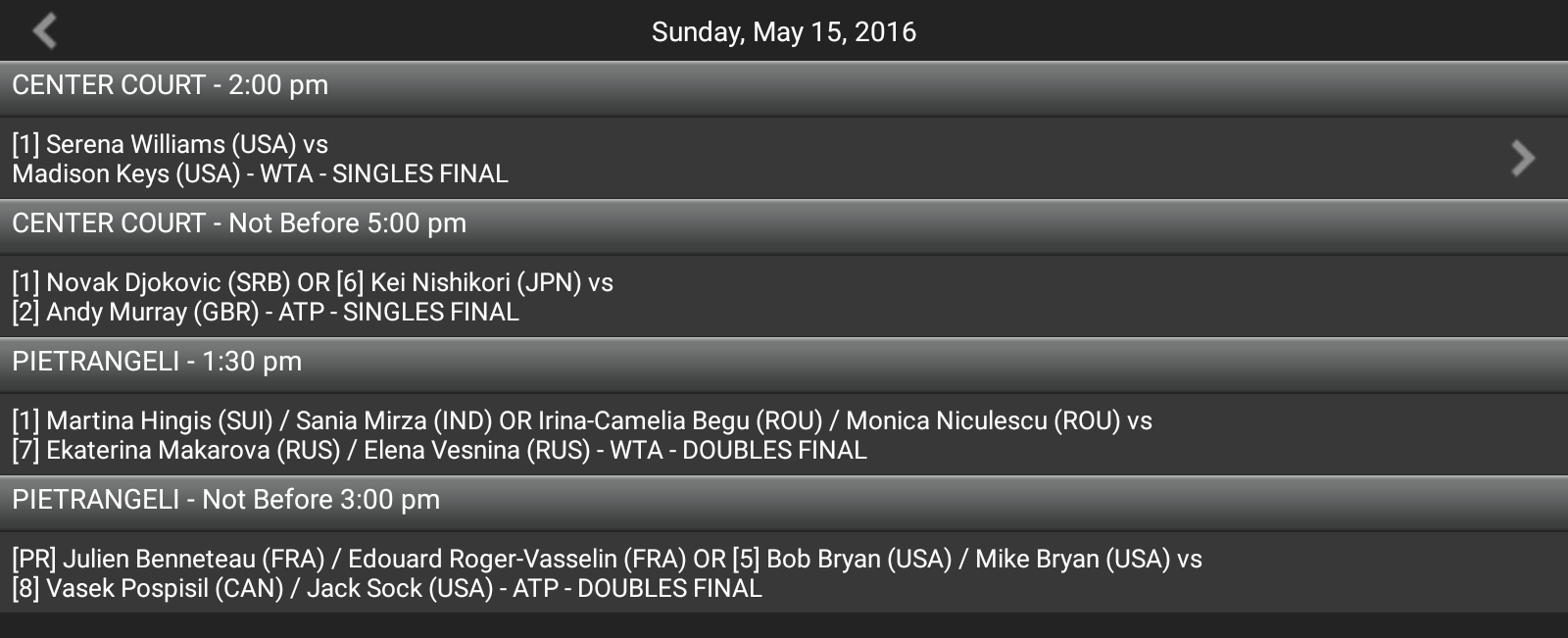 Scriviamo l’ultimo ordine di gioco dell’edizione numero 73 degli Internazionali Bnl d’Italia con un po’ di amarezza. Domani, domenica 15 maggio, é tempo delle quattro finali, due di singolare e due di doppio.