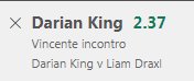 Il pronostico è D. King vincente a @2.37 su Bet365.