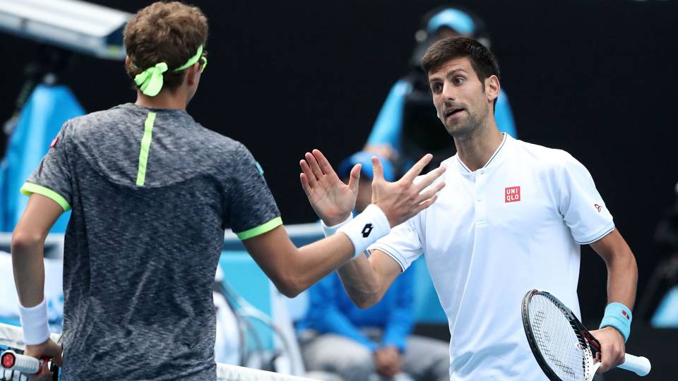 Australian Open 2017, la stretta di mano tra Djokovic e Istomin